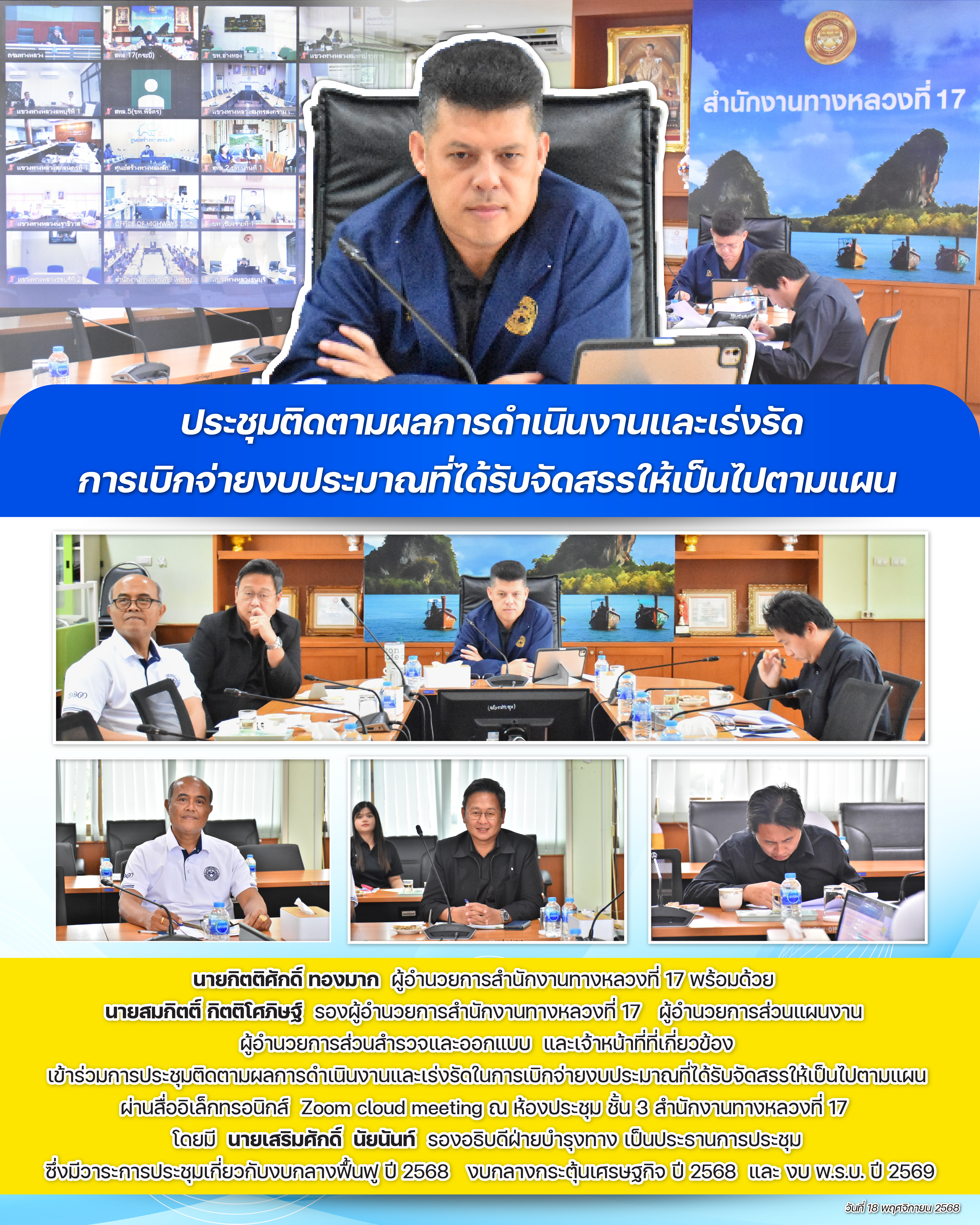 ประชุมติดตามผลการดำเนินงานและเร่งรัด การเบิกจ่ายงบประมาณที่ได้รับจัดสรรให้เป็นไปตามแผน วันที่ 18 พฤศจิกายน 2568