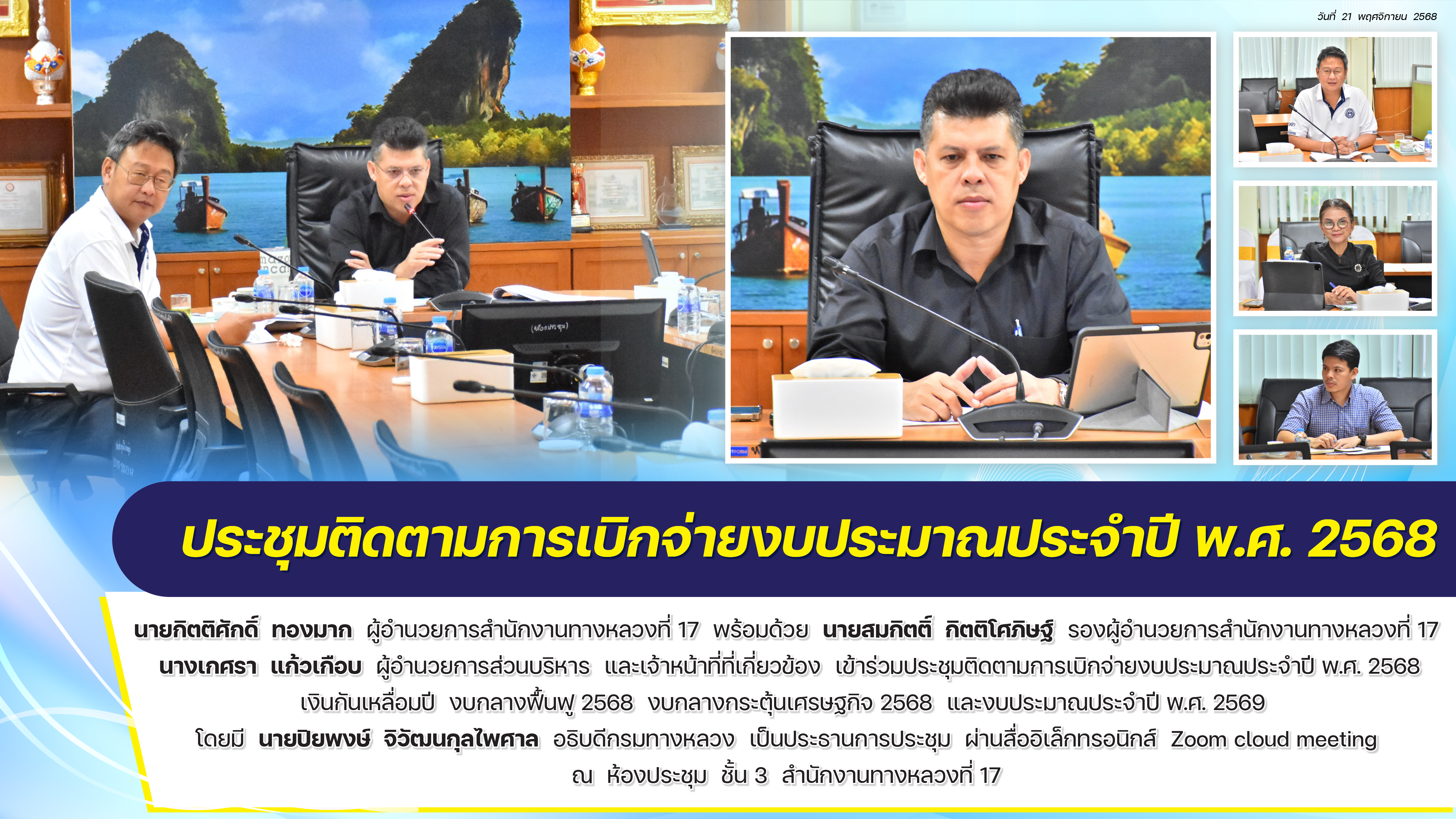 ประชุมติดตามการเบิกจ่ายงบประมาณประจำปี พ.ศ. 2568 วันที่ 21 พฤศจิกายน 2568