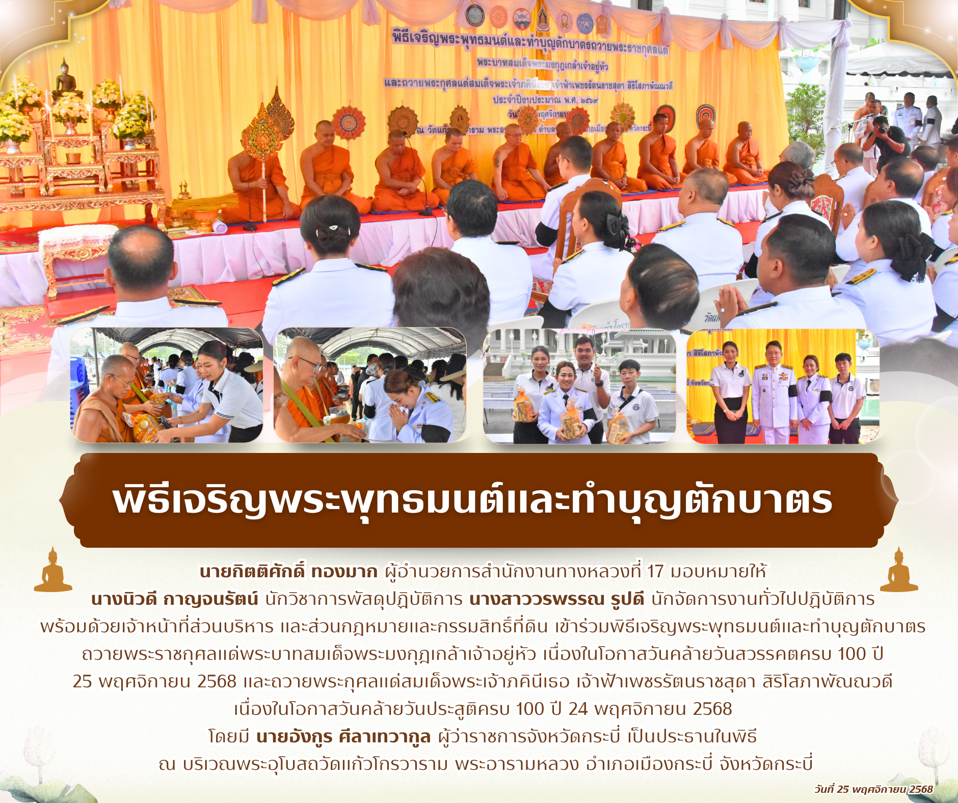 พิธีเจริญพระพุทธมนต์และทำบุญตักบาตร วันที่ 25 พฤศจิกายน 2568