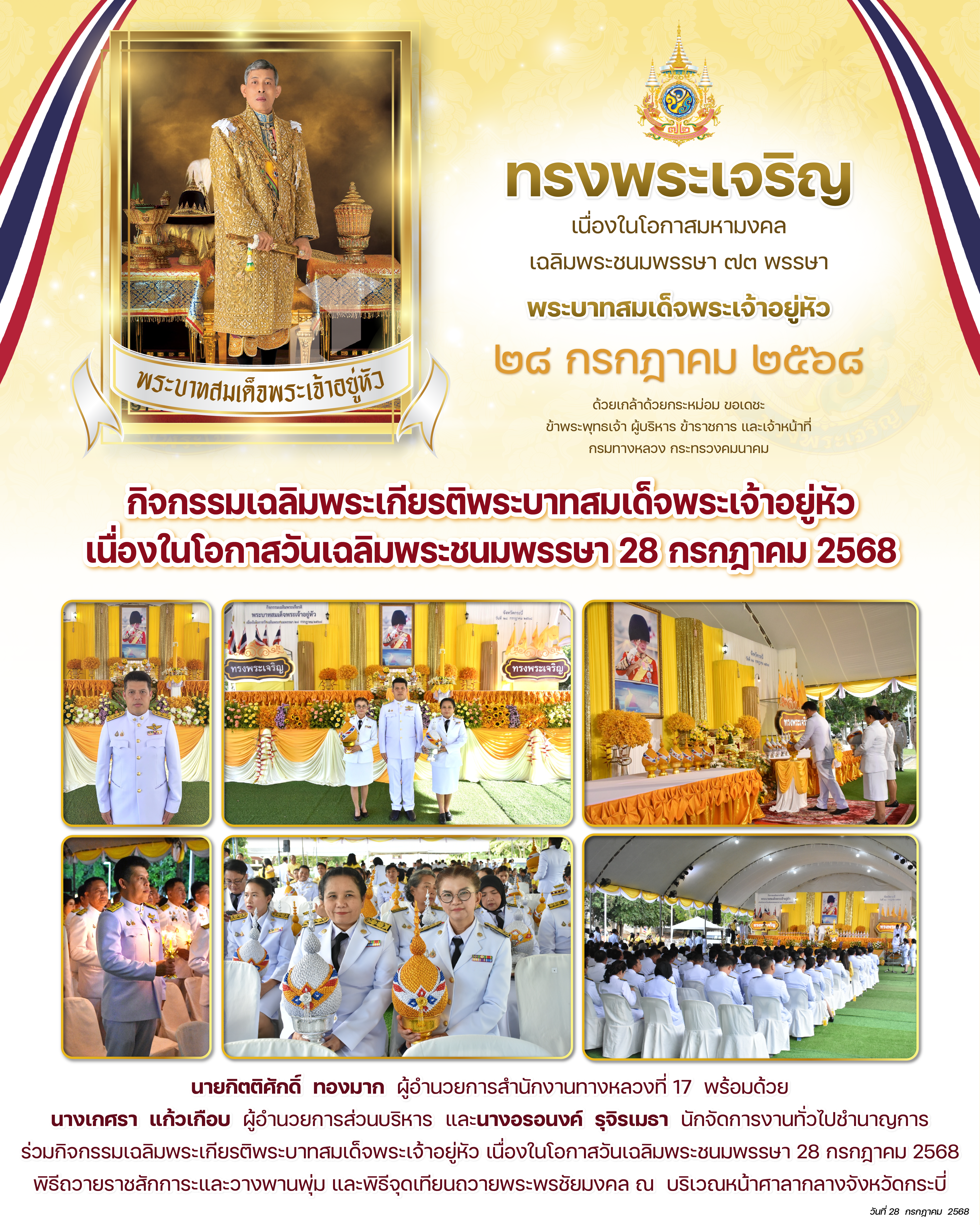 กิจกรรมเฉลิมพระเกียรติพระบาทสมเด็จพระเจ้าอยู่หัว เนื่องในโอกาสวันเฉลิมพระชนมพรรษา 28 กรกฎาคม 2568