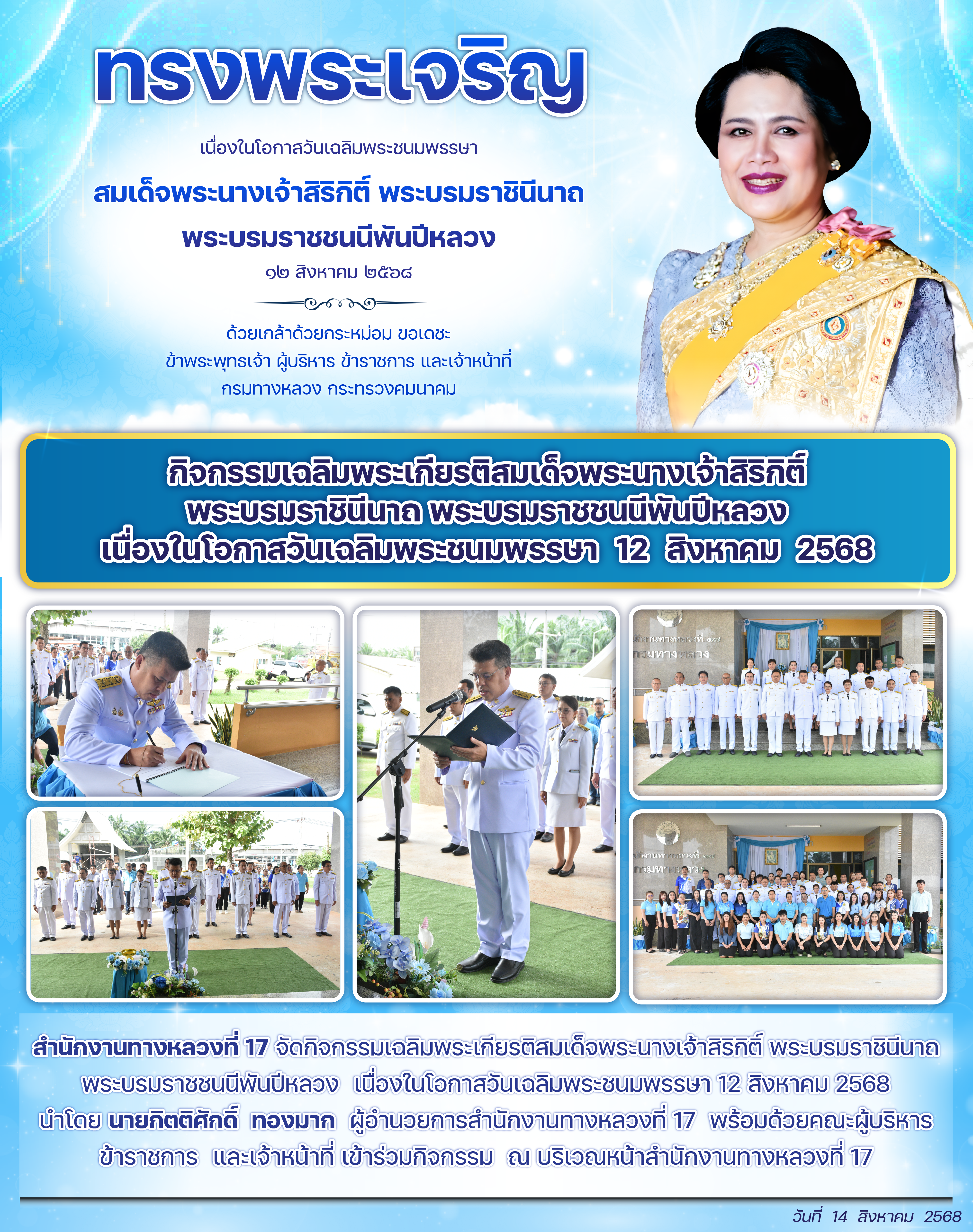 กิจกรรมเฉลิมพระเกียรติสมเด็จพระนางเจ้าสิริกิติ์ พระบรมราชินีนาถ พระบรมราชชนนีพันปีหลวง เนื่องในโอกาสวันเฉลิมพระชนมพรรษา 12 สิงหาคม 2568 วันที่ 14 สิงหาคม 2568