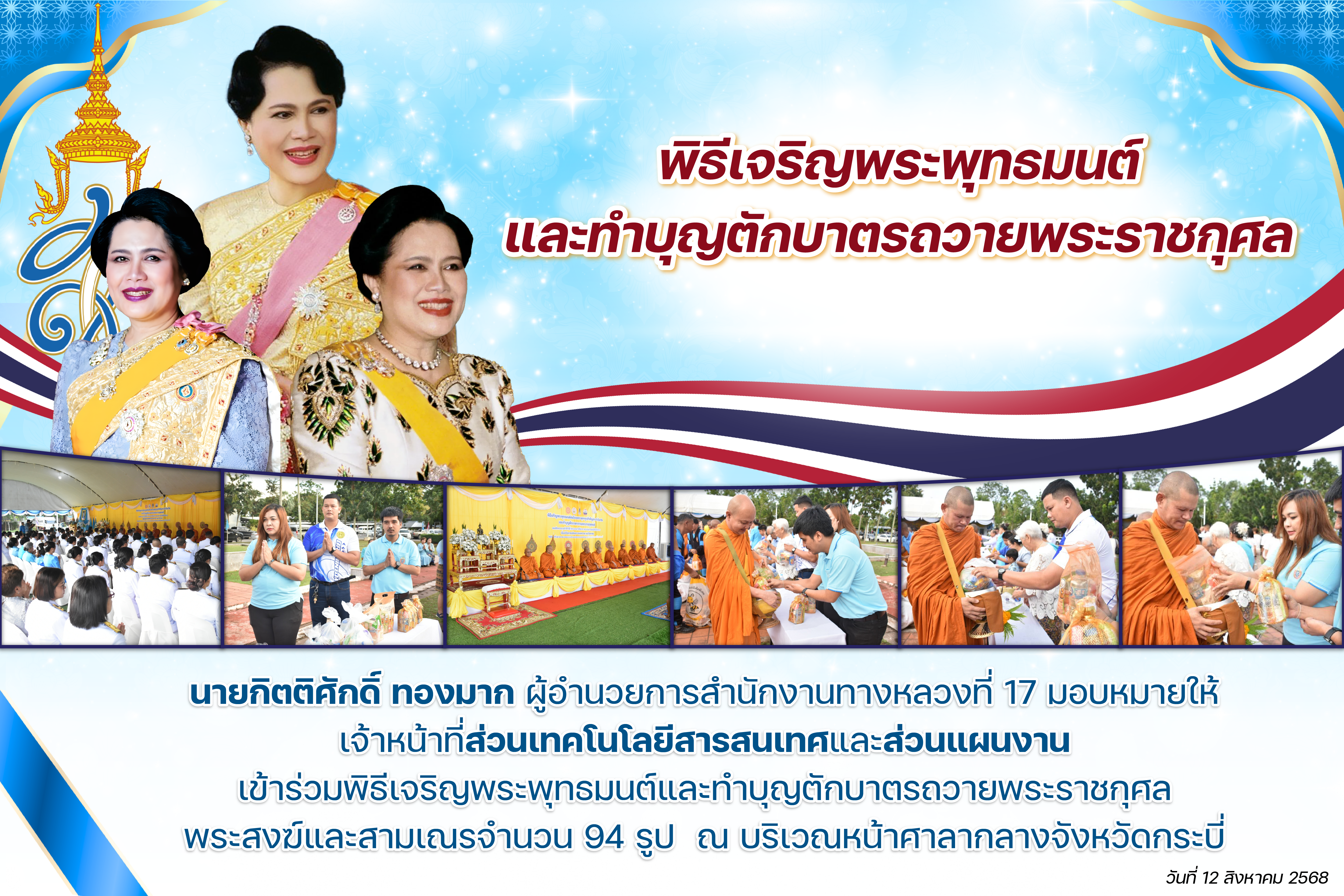พิธีเจริญพระพุทธมนต์ และทำบุญตักบาตรถวายพระราชกุศล วันที่ 12 สิงหาคม 2568