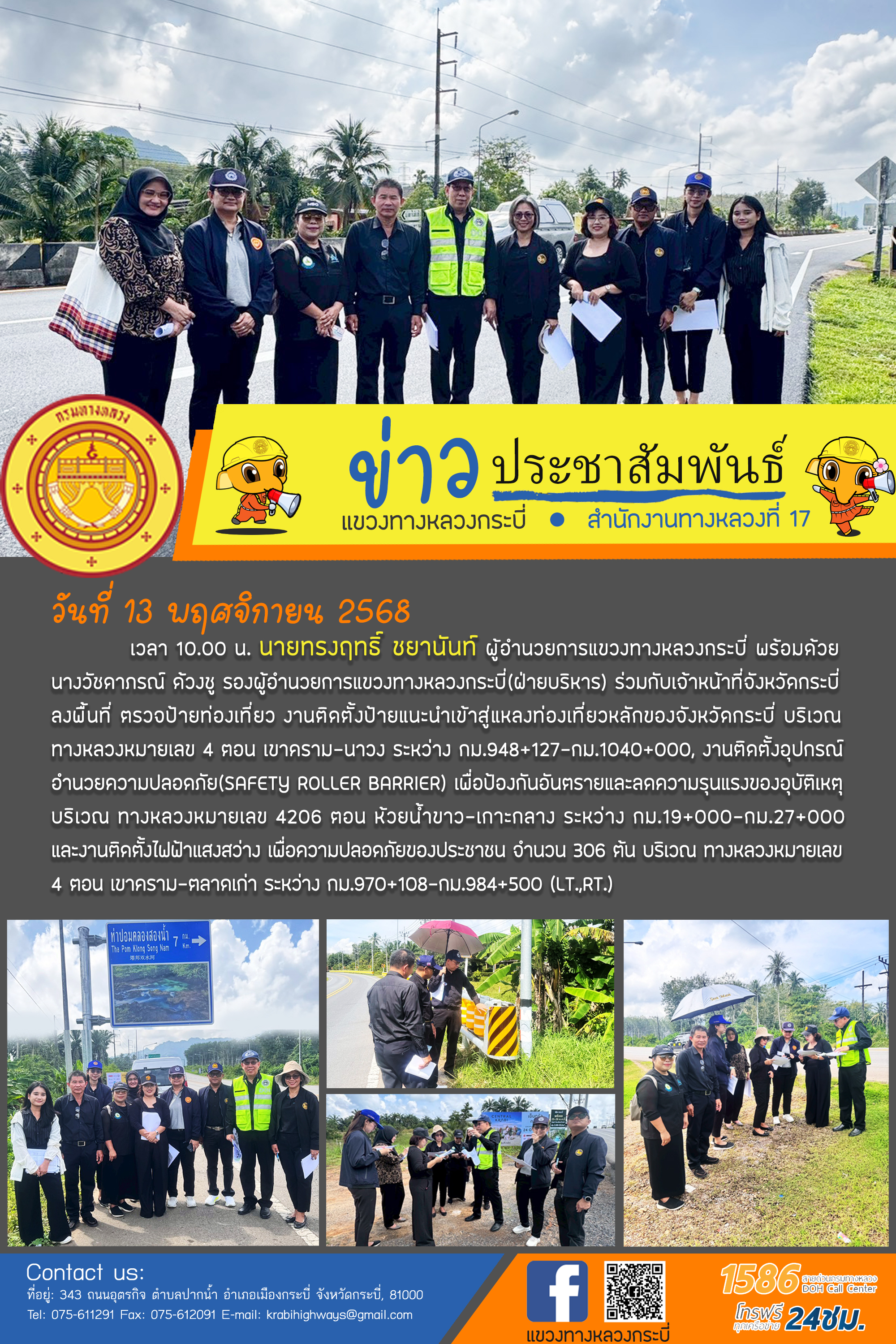 แขวงทางหลวงกระบี่ ดำเนินการ การมีส่วนร่วมของประชาชน โครงการก่อสร้างเพิ่มมาตรฐานทางหลวง ทางหลวงหมายเลข 4033 ตอน ในช่อง-ในไร่