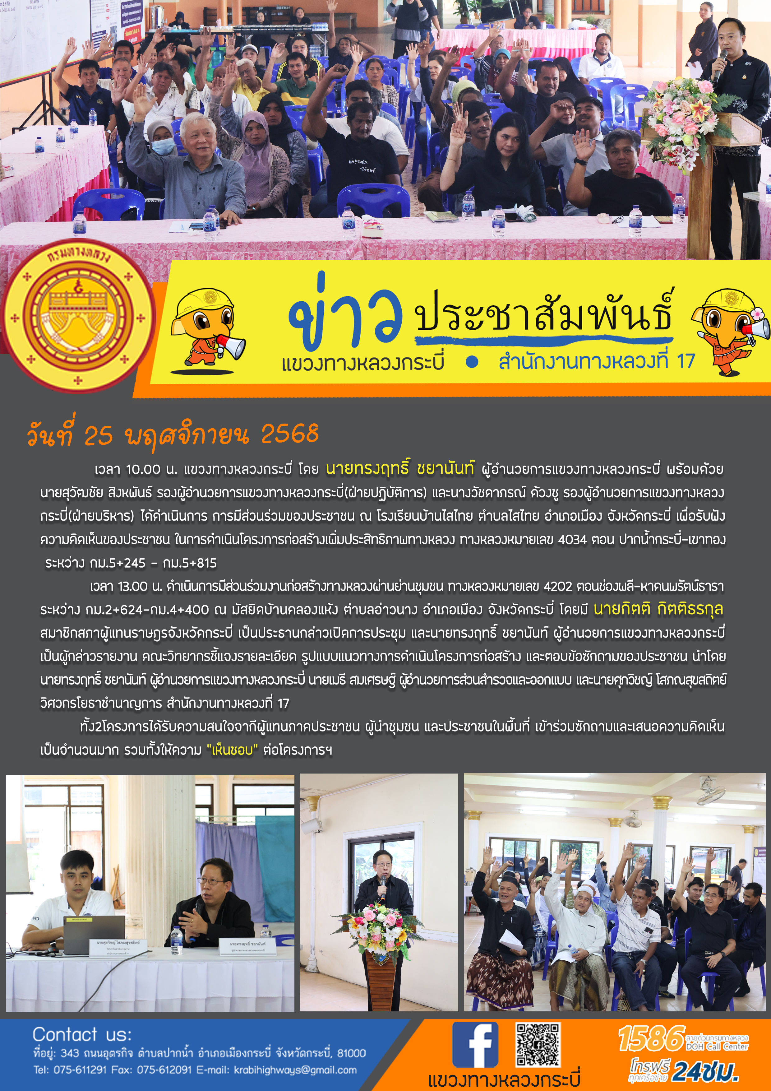 แขวงทางหลวงกระบี่ดำเนินการ การมีส่วนร่วมของประชาชน ทางหลวงหมายเลข 4034 และ4202