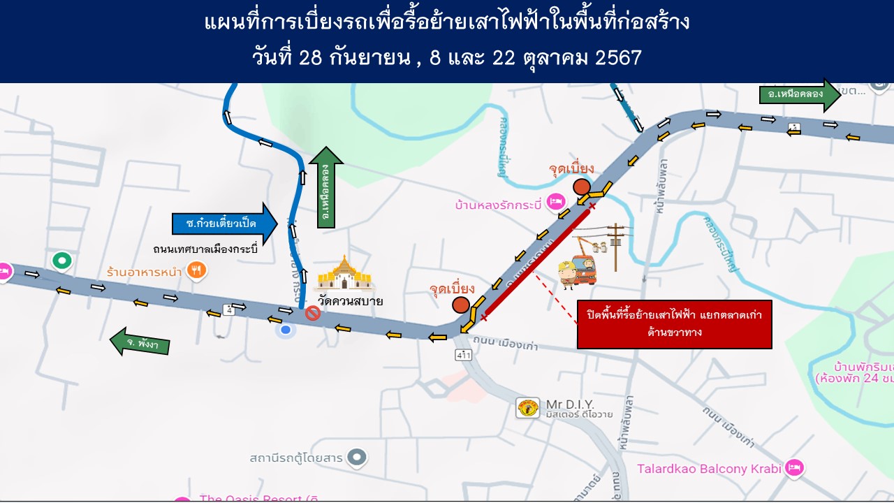 แผนผังพื้นที่ความรับผิดชอบของแขวงทางหลวงกระบี่ที่มีการดำเนินการโครงการก่อสร้าง (งบกระตุ้น ปี68)