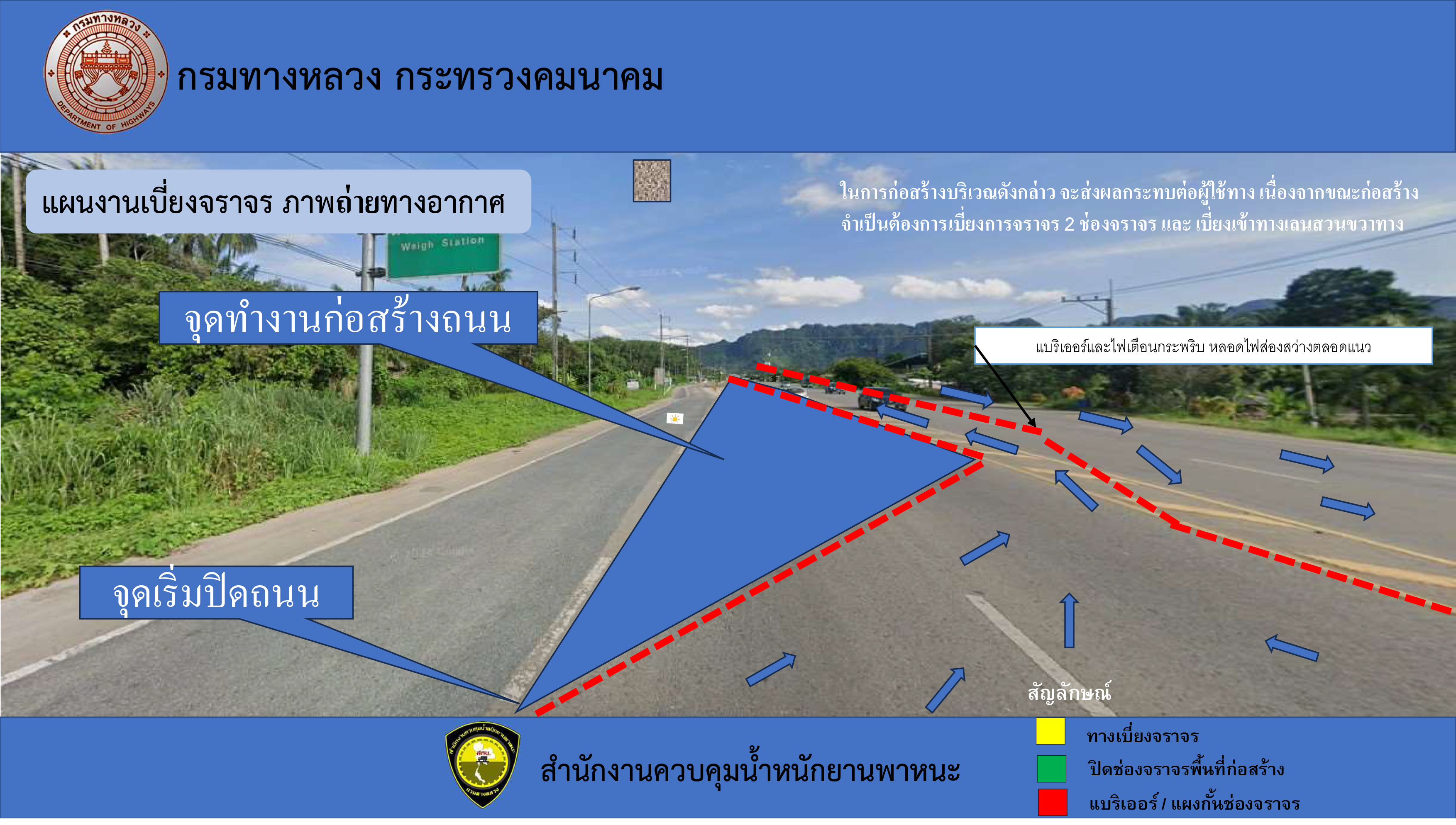 กรมทางหลวงจะทำการเบี่ยงการจราจรเพื่อก่อสร้างถนน