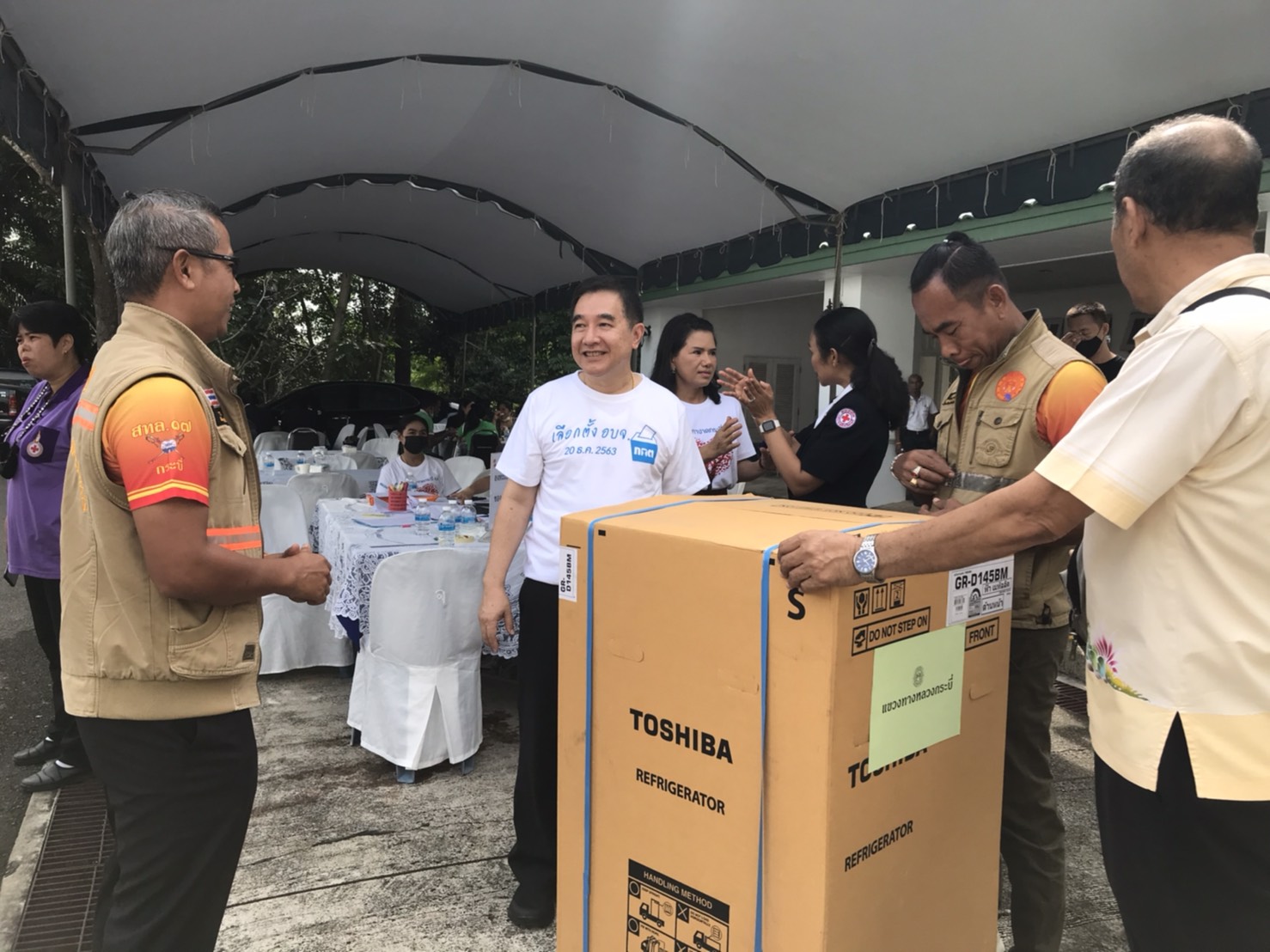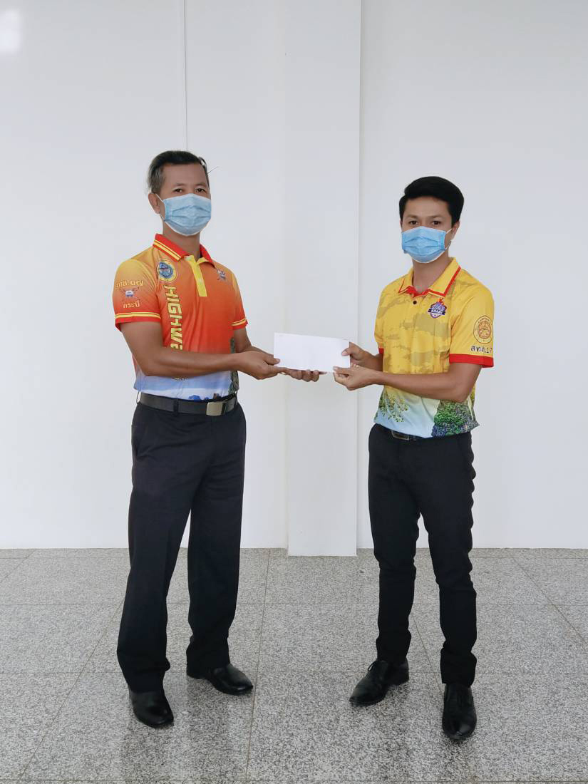 นายปรีชา วิเศษสิทธิ์ ผู้อำนวยการแขวงทางหลวงกระบี่ บริจาคของรางวัลสำหรับออกร้านมัจฉากาชาดจังหวัดกระบี่