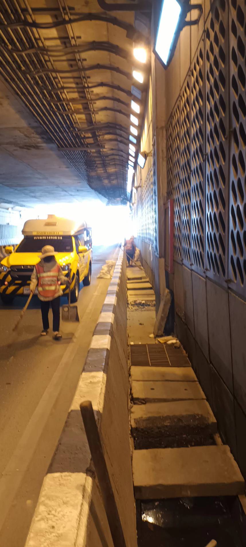 แขวงทางหลวงภูเก็ตโดยหมวดทางหลวงภูเก็ตดำเนินการทำความสะอาด (อุโมงทางลอดแยกสามกอง)