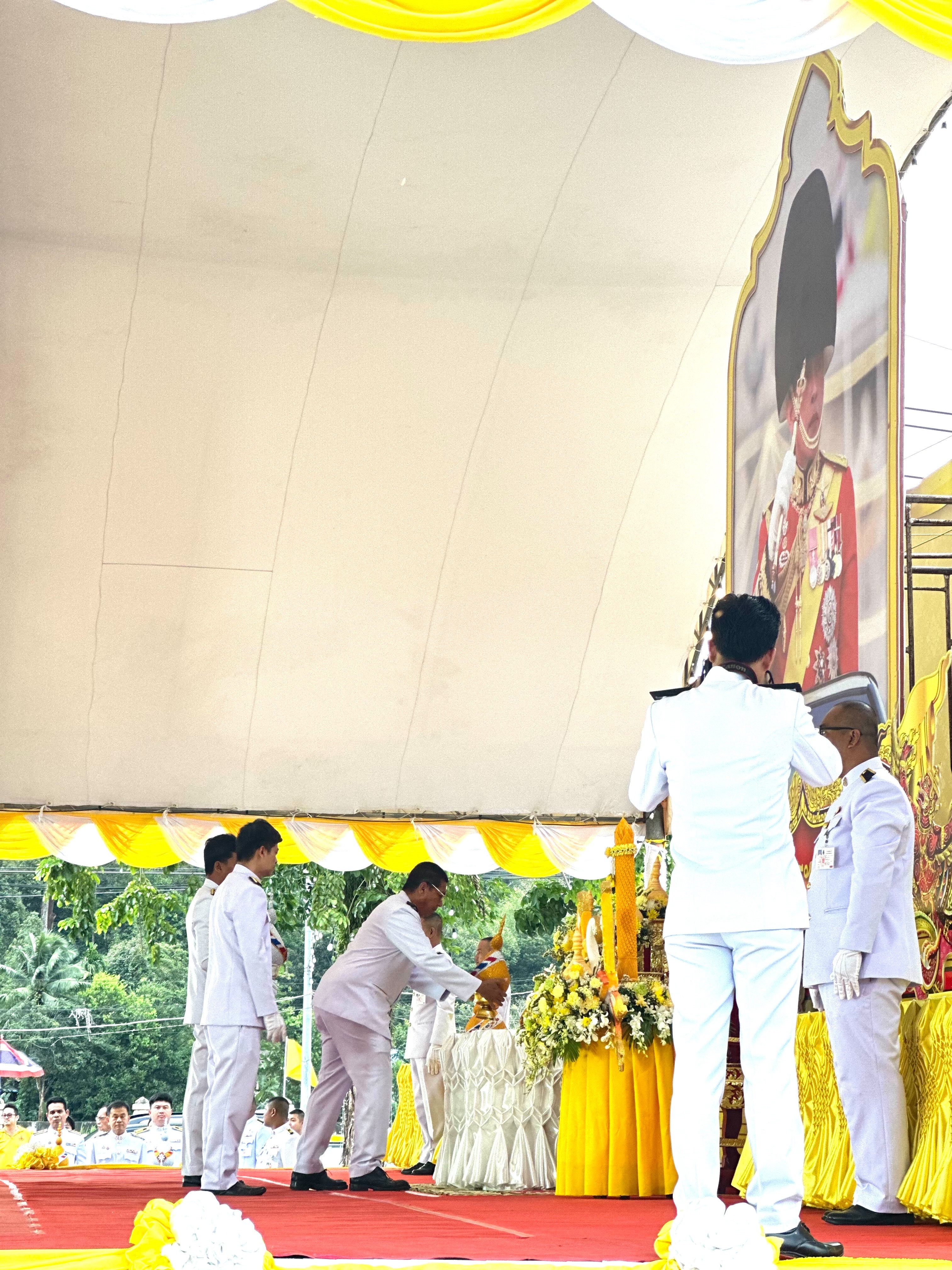 จากนั้นร่วมพิธีถวายเครื่องราชสักการะ วางพานพุ่ม และพิธีจุดเทียนถวายพระพรชัยมงคล