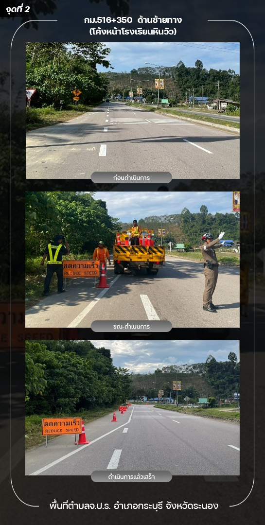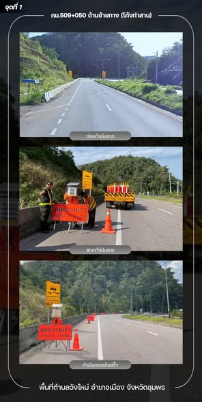กู้ชีพกู้ภัย และเจ้าหน้าที่ในสังกัดฯ ดำเนินการปิดจุดกลับรถ และติดตั้งอุปกรณ์อำนวยความปลอดภัยบริเวณจุดเสี่ยง