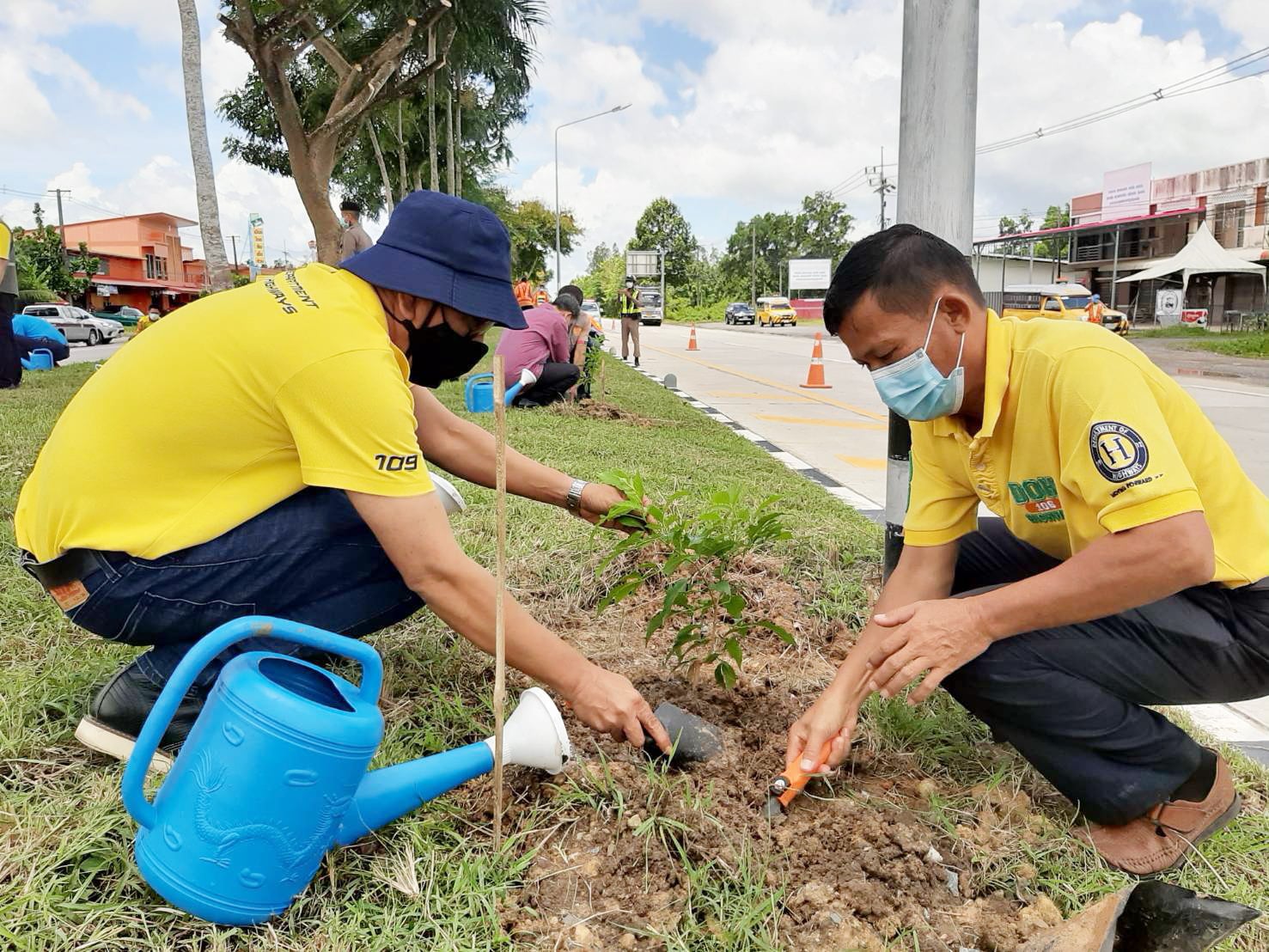 ร่วมปลูกต้นทองอุไร บริเวณเกาะแบ่งถนน ทางหลวงหมายเลข 403 ต้นม่วง - ตรัง ที่ กม.111+000