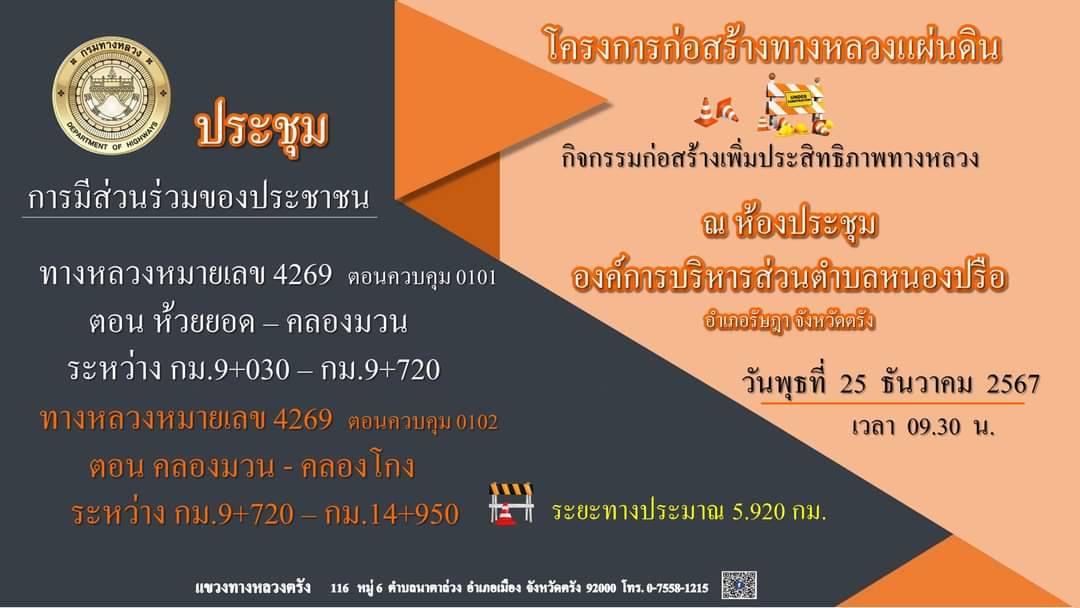 ตอนควบคุม 0101 ตอน ห้วยยอด - คลองมวน ระหว่าง กม.9+030 - กม.9+720 และ